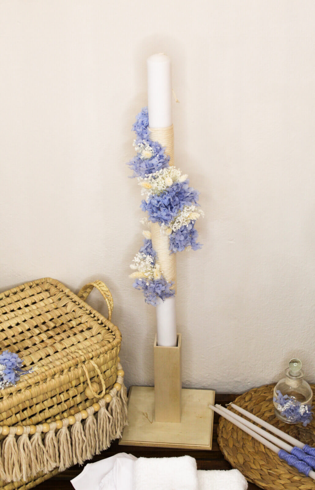 • Το σετ περιλαμβάνει λαδόπανα, εσώρουχα, πετσέτες, μπουκάλι λαδιού, σαπούνι, κεριά κολυμπήθρας, λαμπάδα και την καλαθούνα