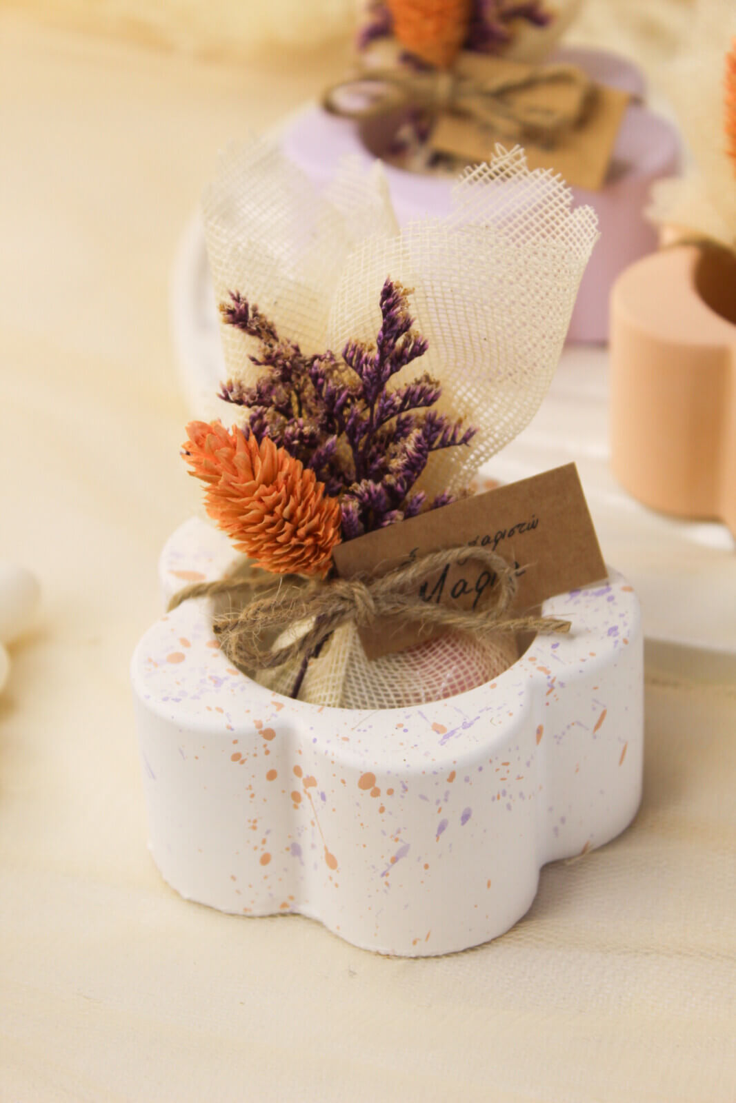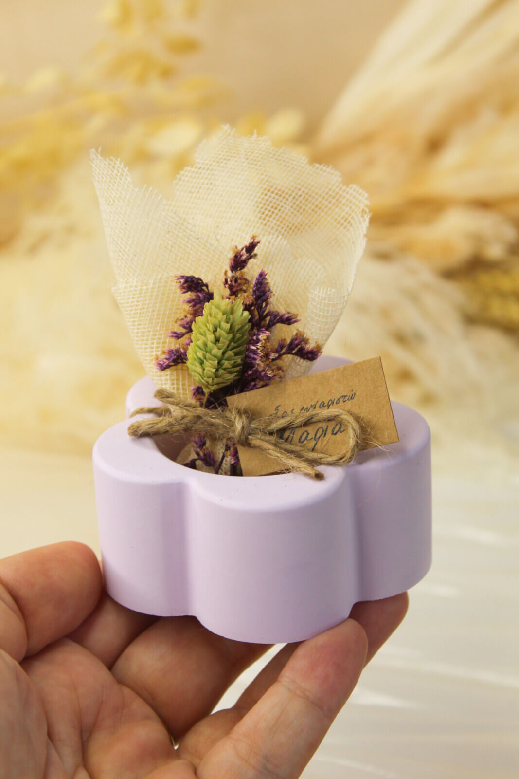 - Συνοδεύεται από 3 κουφέτα Χατζηγιαννάκη της επιλογής σας ,προσωποποιημένο καρτελάκι και αποξηραμένα